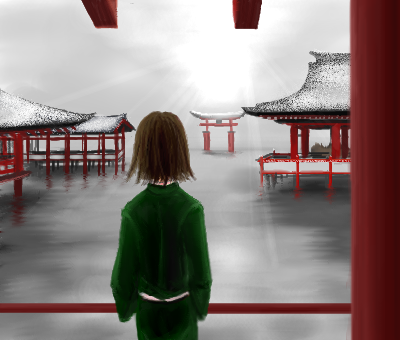 ニュースで厳島神社の雪景色が放送されていて綺麗だなぁと思ったので、写真+想像で描いてみた。
